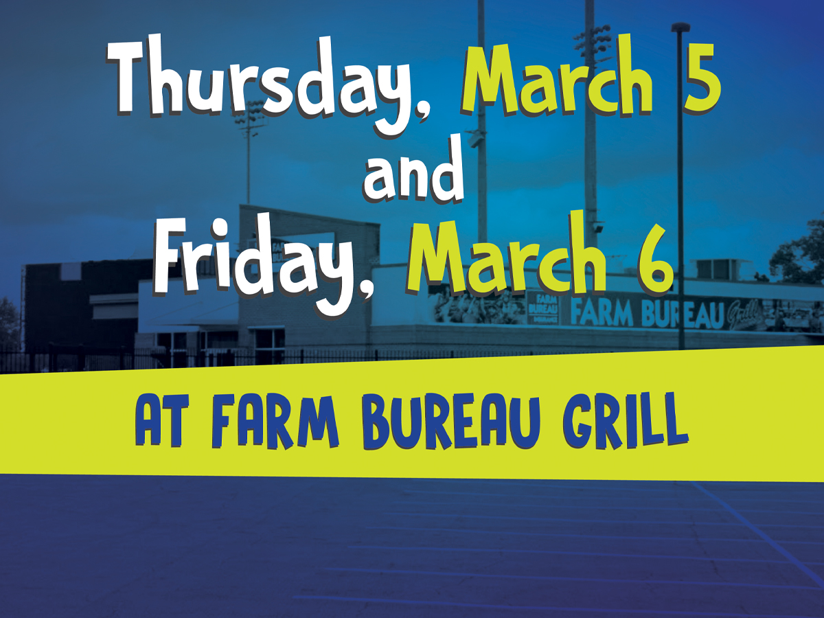 Packet Pickup will be held Thursday, March 5 and Friday, March 6 at the Farm Bureau Grill at Trustmark Park.